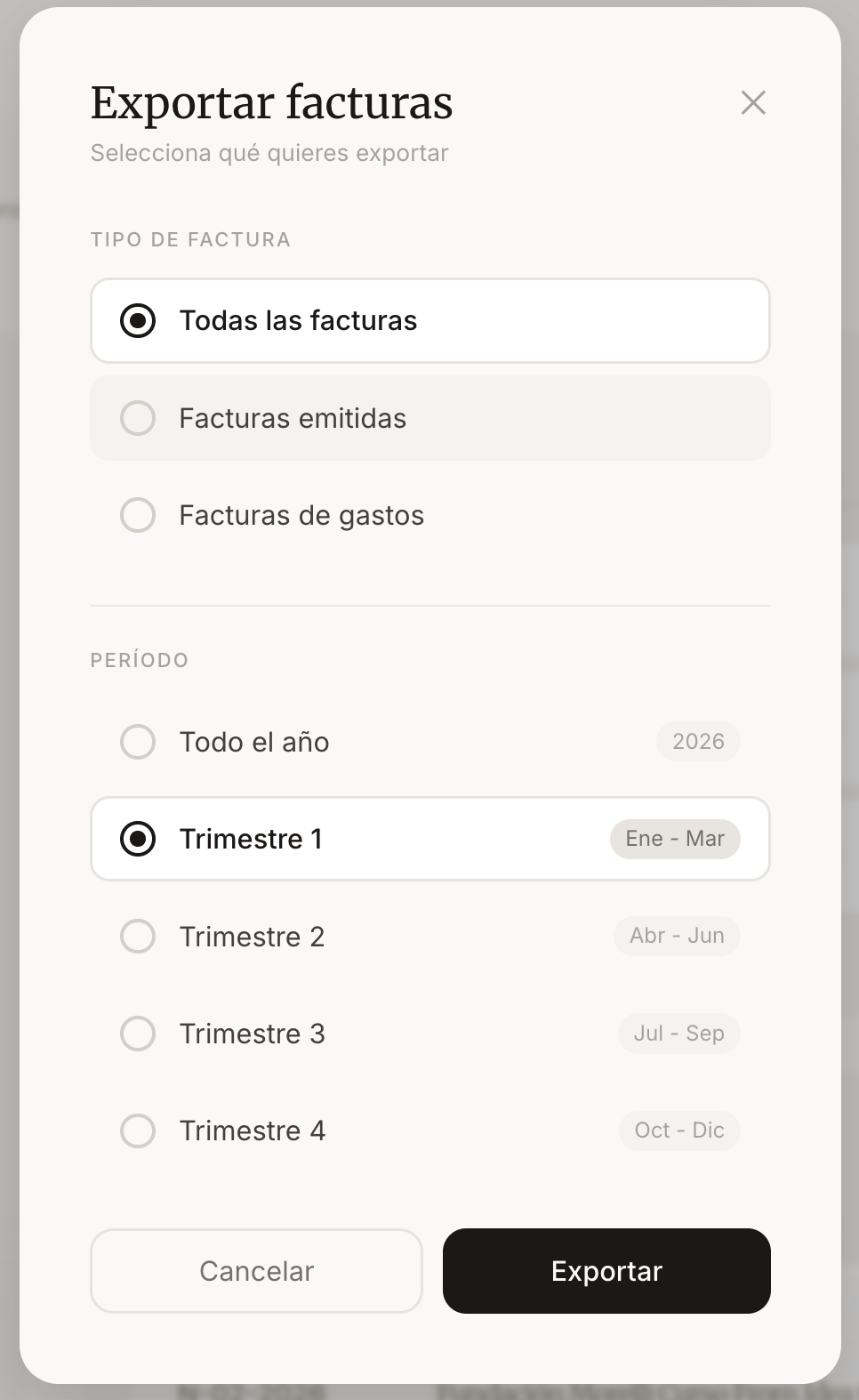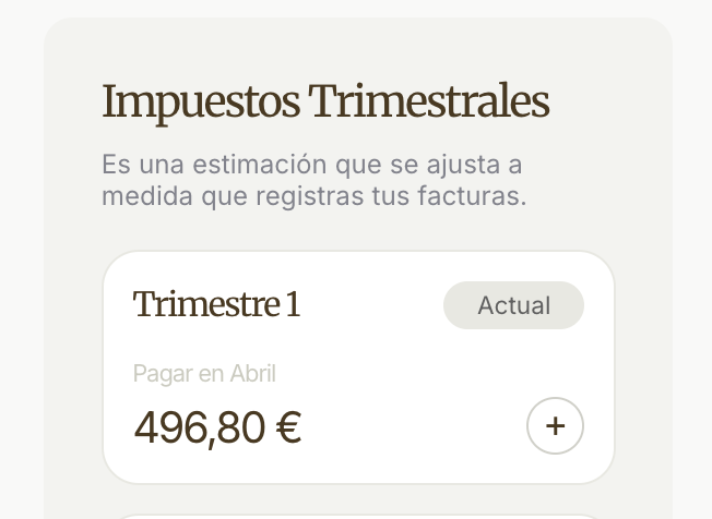 Cada vez que facturas, Cece pre-calcula el importe que pagarás en el siguiente trimestre, así lo sabes de antemano. Y, con un clic tienes todo lo que necesita tu gestor.